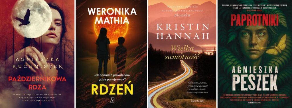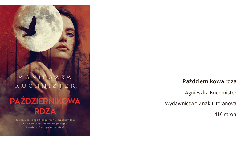 Agnieszka Kuchmister bardzo umiejętnie połączyła dwie linie czasowe, które zespoliła tą trzecią, najbardziej współczesną. Jest tu historia ziem okołokarkonoskich, przesiedleńców i młodych kobiet, które napotykają po drodze wilki. I lasu, który patrzy tysiącem oczu i wciąga w swoje odmęty. Tutaj zło ma ludzkie oblicze, a baśnie służą za piękną metaforę. I tworzą ten wspaniały nastrój, którego tak bardzo pragniemy. „Październikowa rdza” Was nie zawiedzie. Ba, może nawet zachwycić.