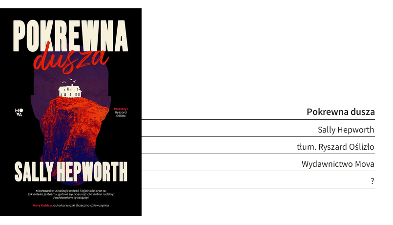 I tu powraca moje porównanie do B.A. Paris, która jest mistrzynią absolutnie odjechanych historii w klimacie domestic. Sally Hepworth również szaleje, wymyślając fabułę, w której dzieje się i nie ma, że boli. Jest smakowicie, można kręcić głową, można otwierać szeroko oczy ze zdziwienia i mieć po prostu frajdę z lektury.