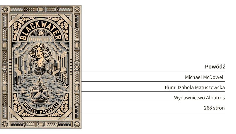 Na Sagę Blackwater składa się sześć tomów: „Powódź”, „Grobla”, „Dom”, „Wojna”, „Fortuna”, „Deszcz”. Tak, to jest pełnokrwista groza. Tak, to jest saga rodzinna. Tak, to jest gotyk amerykańskiego Południa. Dla przypomnienia, i krótko: gotyk amerykańskiego Południa jest wtedy, gdy groza rozgrywa się w tzw. pasie Biblii Stanów Zjednoczonych, a horror wiruje tam w pełnym słońcu, upale i duchocie. W tle czuć ten specyficzny nastrój południowców, u których życie naznaczone jest wciąż konsekwencjami Wojny Secesyjnej, ale mentalność zmienia się bardzo powoli. Na tym właśnie skomplikowanym tle rozgrywa się Saga Blackwater.